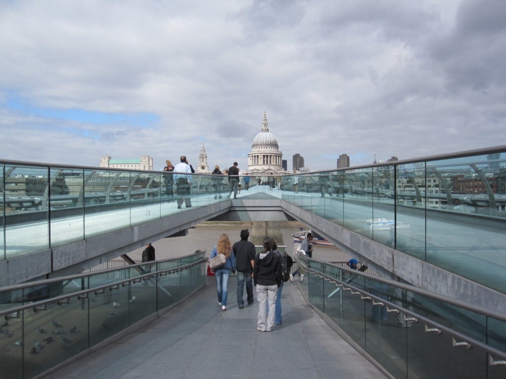 The following day we took a short river cruise and toured the South Bank, the Millenium Bridge and the unbelievable St. Paul’s Cathedral. Incredibly huge, Stunningly ornate, and Predictably crowded, mostly with hundreds of grim German children whose stocky white legs were perfectly suited to tackle the 530 stairs to the Golden Gallery, but whose huddled conversations took on a sinister air in the narrow quiet of the Whispering Gallery. Later that night Mark, Jesse and I were on hand at beautiful Emirates Stadium to watch as Arsenal pummeled the visiting Portuguese side. Now who’s laughing at the Arsenal t-shirt I bought outside the stadium for £9 that has weirdly big armholes and a fake Emirates logo? Outstanding atmosphere and terrific seats, despite the fact we were in what seemed to be the more upscale, less fanatic, section filled with crotchety old men, yuppies in corduroy suit jackets and women with their impossibly small-bladdered children. Nonetheless, phenomenal, just phenomenal.